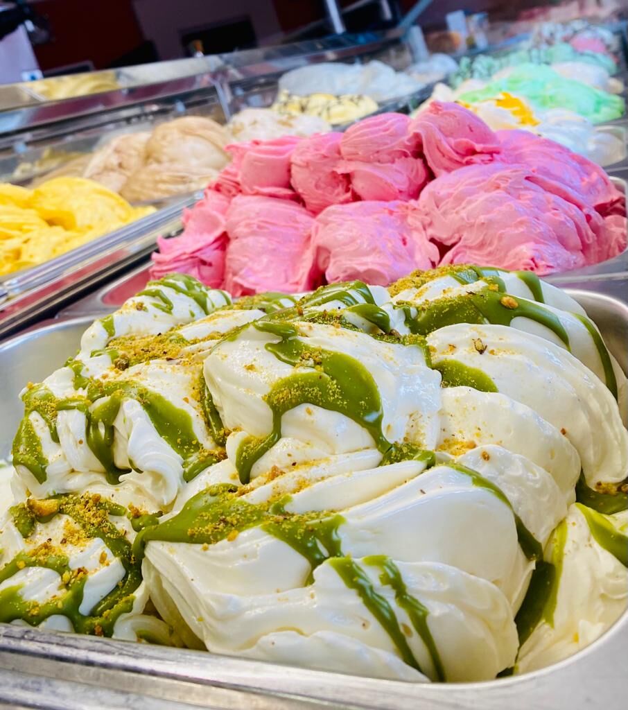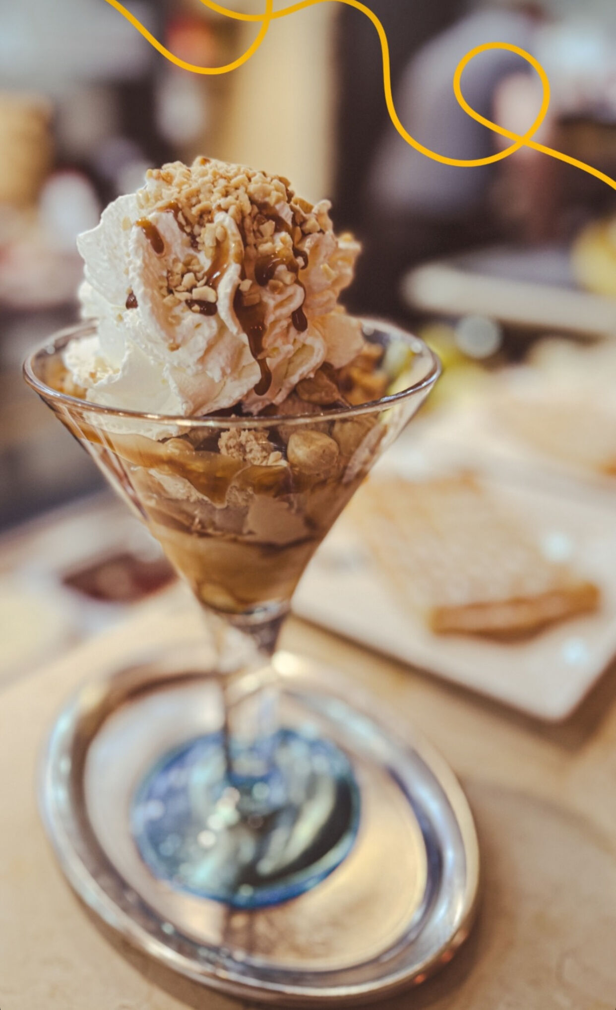 Auf unserer Karte finden Sie eine großes Sortiment an Eisbechern und eine vielseitige Auswahl an über 100 Eisvariationen, die sich saisonal wechseln. Wir bieten natürlich auch unsere Klassiker an, wie auch außergewöhnliche Eissorten.